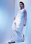 Simple styles and shapes, basic and body-skimming... clean and comfortable for men, snugger for women, yet ever in the sign of the utmost freedom. Simple genres and moods, at once sporty urban and easy thanks to versatile solutions and extraspecial details... Natural materials... with a high-tech twist. From the purest cotton to a crisp super light "paper," from nylon to latex, from jersey to resinated, rubberized and coated fabrics... Energetic colors, all the way. Primary white, black, red in solids and mixes, for contrasting profiles and abstract prints. Plus dazzling fluo tones, from turquoise to yellow, for the beachwear.